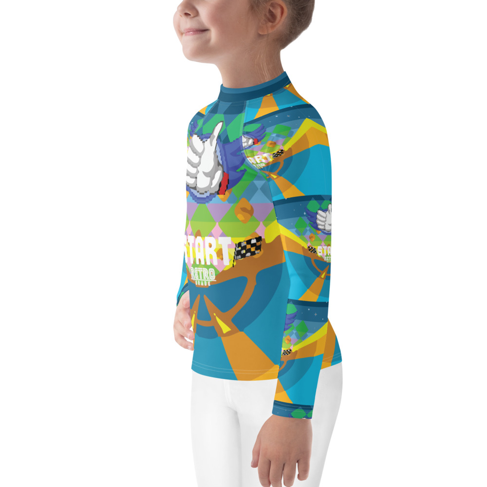 Protect the little ones from the elements with this colorful kids rash guard. Its sun-protective fabric and long body and sleeves make it perfect for running around on the beach, or just being active indoors.